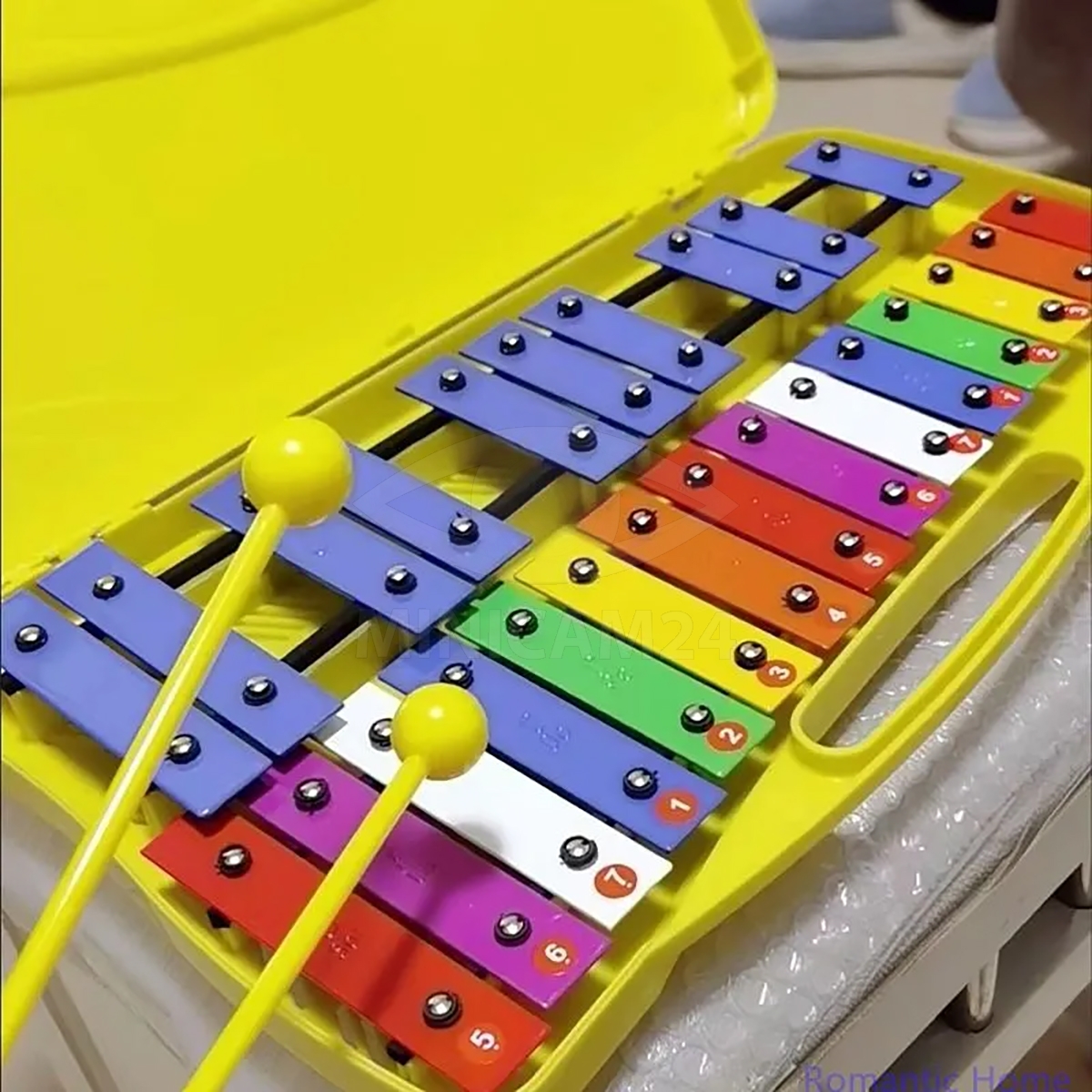 Комплектация включает в себя глокеншпиль, палочки для игры и удобный кейс для хранения и переноски.